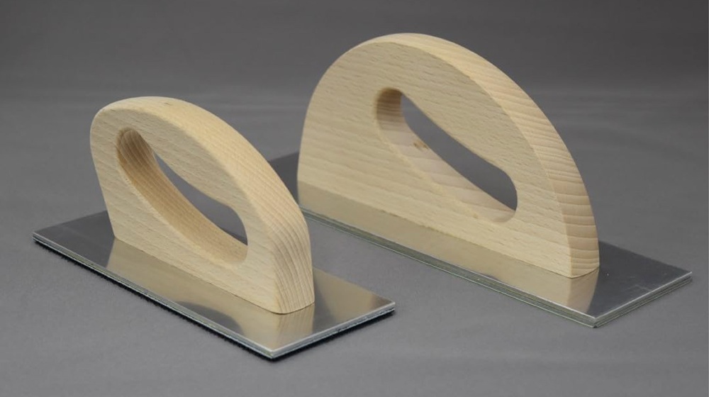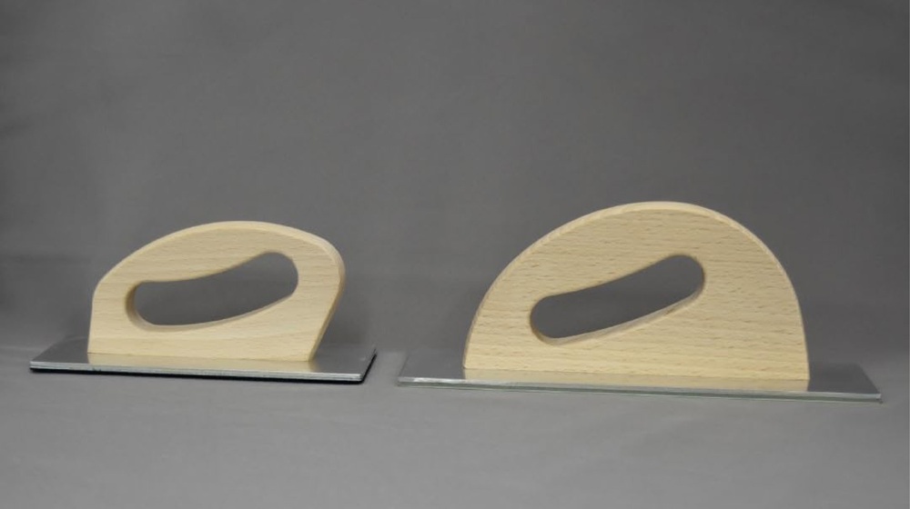 手になじむ木製の取っ手は持ちやすく、ベースとなるアルミ板は薄いので細い隙間の足付等にもお使い頂けます。