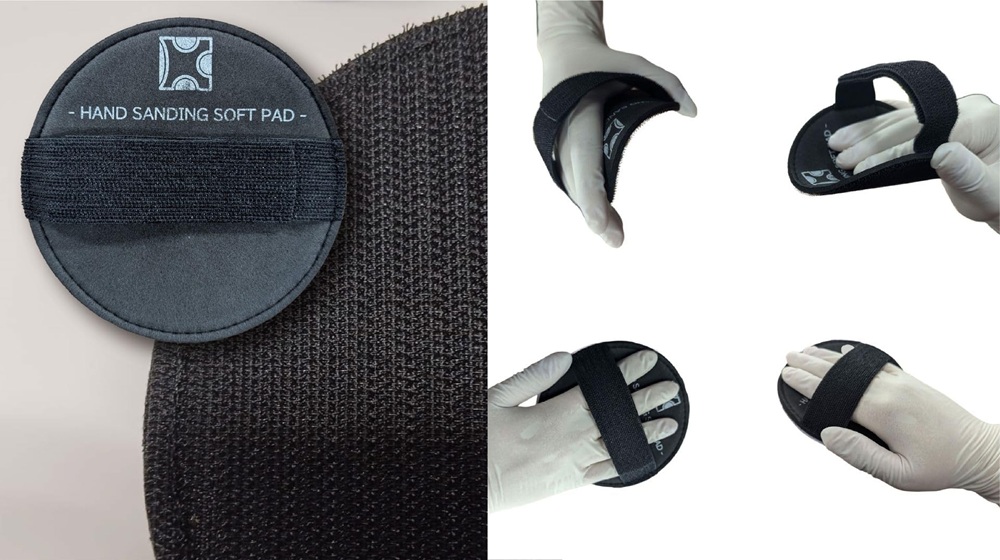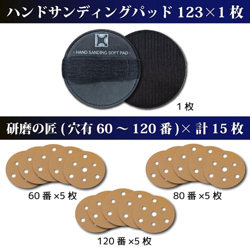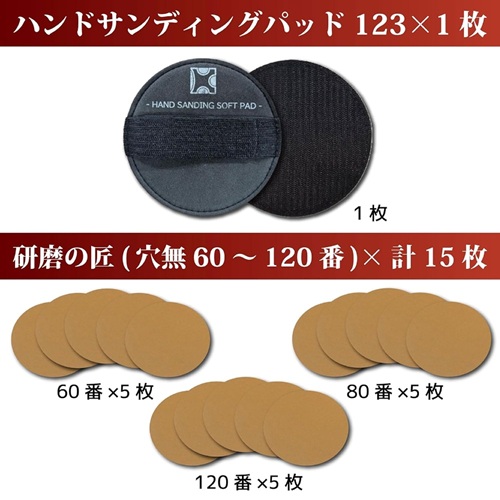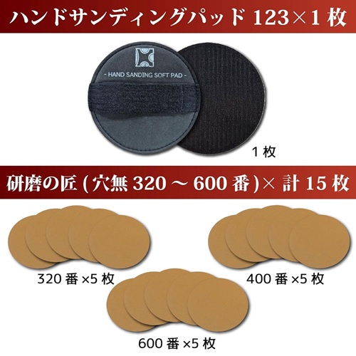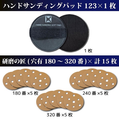 厚さ5mmのパッドでしっかりとしたサンディングが行えます。柔軟性のあるパッドのため逆アールにもしっかり追従。 マジック式ペーパーを貼り付けるだけで使用可能。また手の固定にはマジックテープでサイズ調整を行えます。 折り曲げても石飛びが少ないサンマイトペーパーと合わせるとより作業効率が上がります。 125mmのマジックタイプに対応。只今、期間限定で研磨の匠との限定セットを販売中! サイズ:125mm × 5mm厚