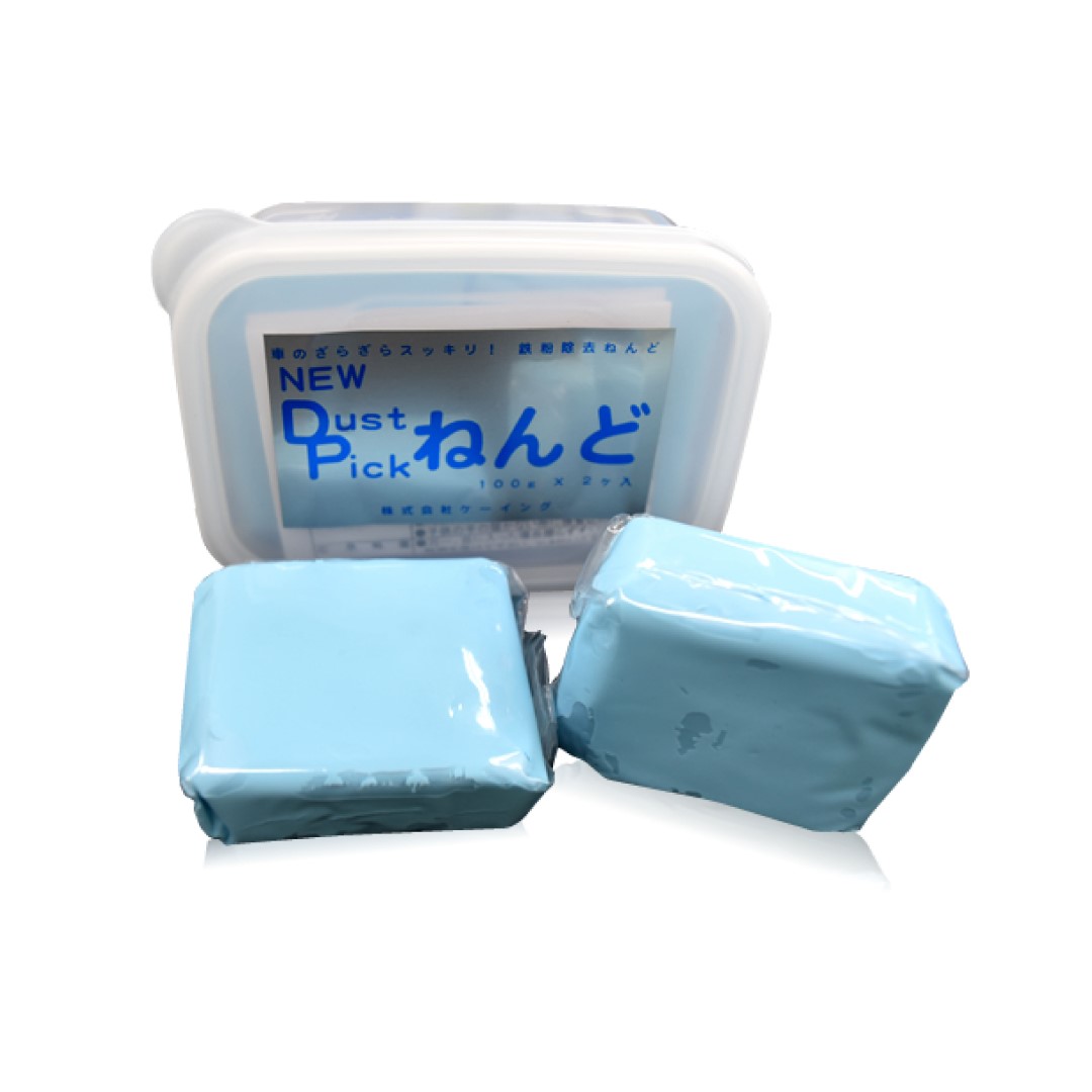 洗車では落ちない鉄粉・塗装ミスト・ピッチ・タール・油膜等を除去する鉄粉除去ねんど「New DustPickねんど」。