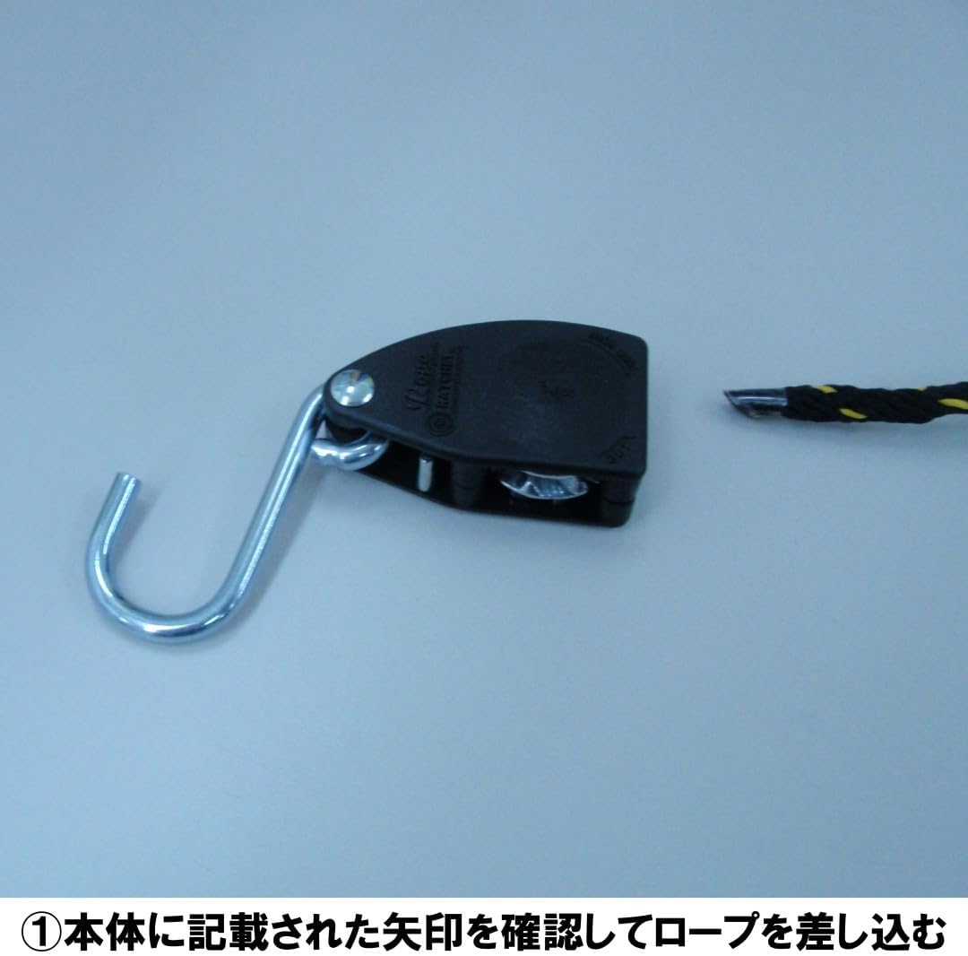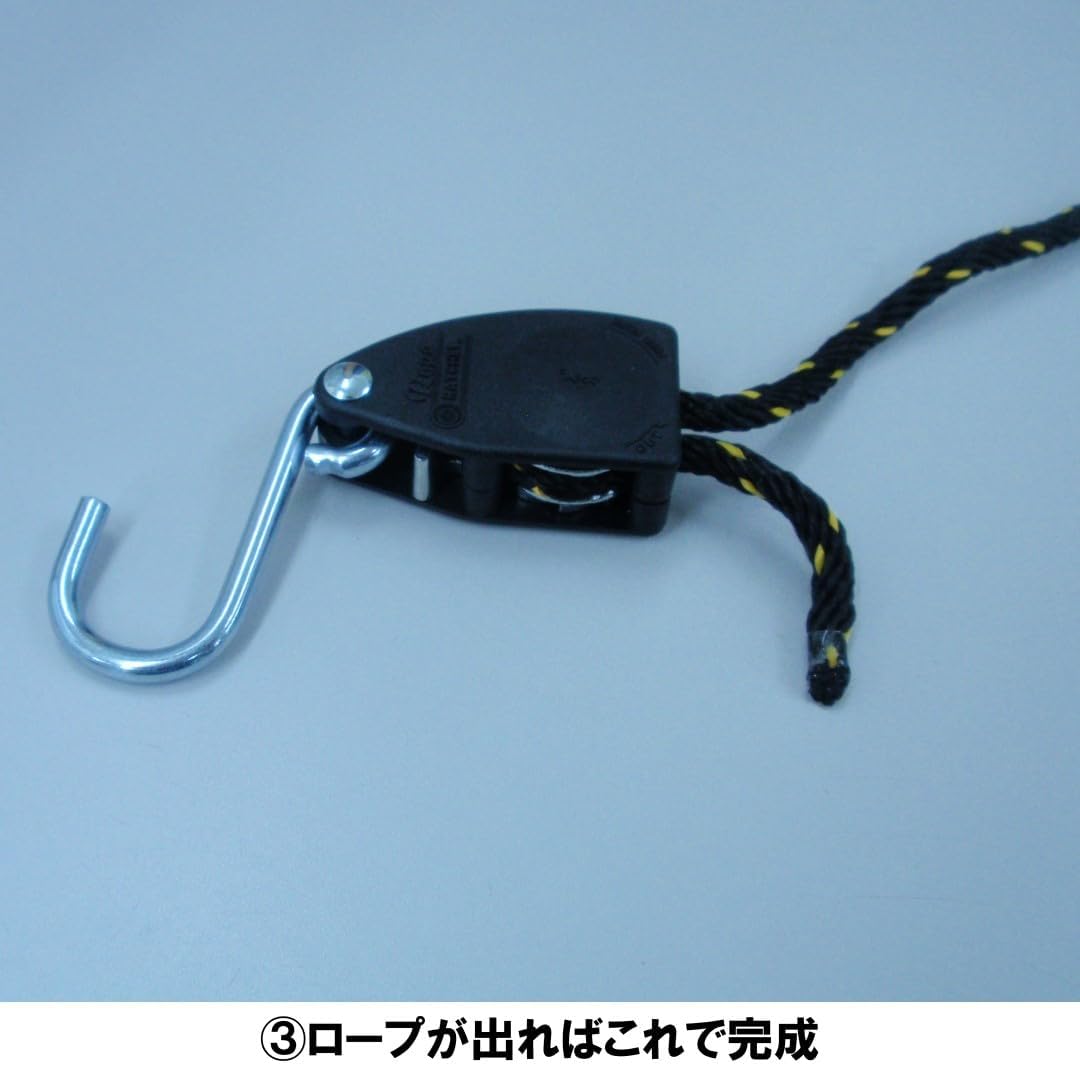 引っ張るだけでしっかり固定でき、緩めるときは開放レバーを押すだけ。スタンド作業の際にワーク固定の補助として使える便利なロープ。