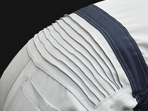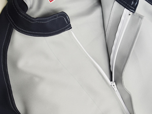 また、ファスナーでワークにキズをつけないよう配慮した 全面ファスナーカバーや発塵を極力少なくするために前ポケットをなくし後方ポケットに変更するなど、塗装作業に適した商品となっております。